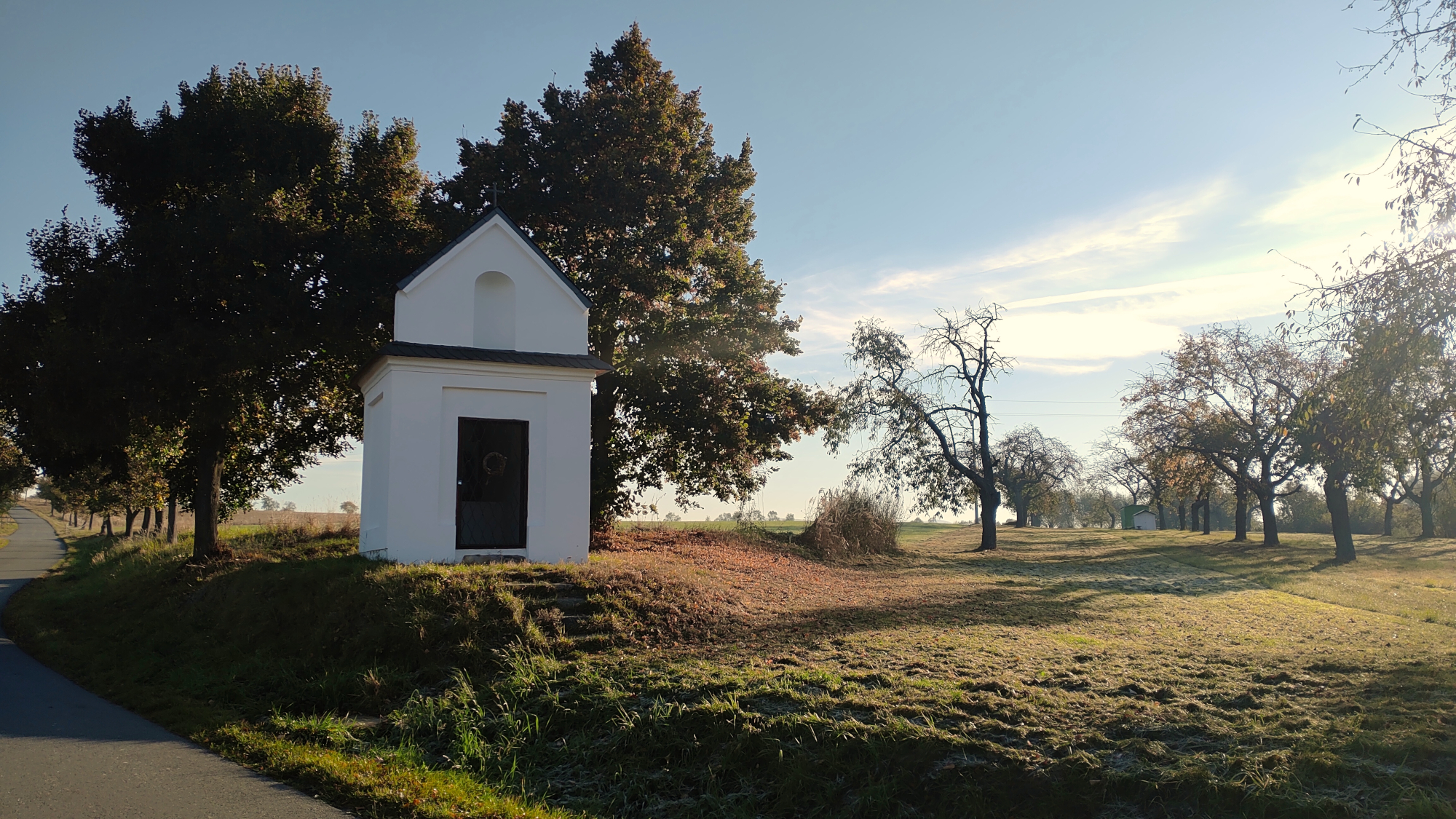 Ona vůbec ta cesta mezi Bludovem a Šumperkem je svým způsobem zvláštní. Nejen, že na ní najdete klasické křížky, sloupy se svatými a kapličku, to by nebylo nic zvláštního, ale najdete zde třeba i kříž sebevrahů, nebo extra dopravní značku pozor králíci. Tam a zpět to bylo podle krokoměru nějakých 13,5 km. Adélka (fenka) to sice zvládla, ale měla toho plné tlapky. Inu, je to už starší třináctiletá dáma, takže budeme muset chodit kratší trasy.
