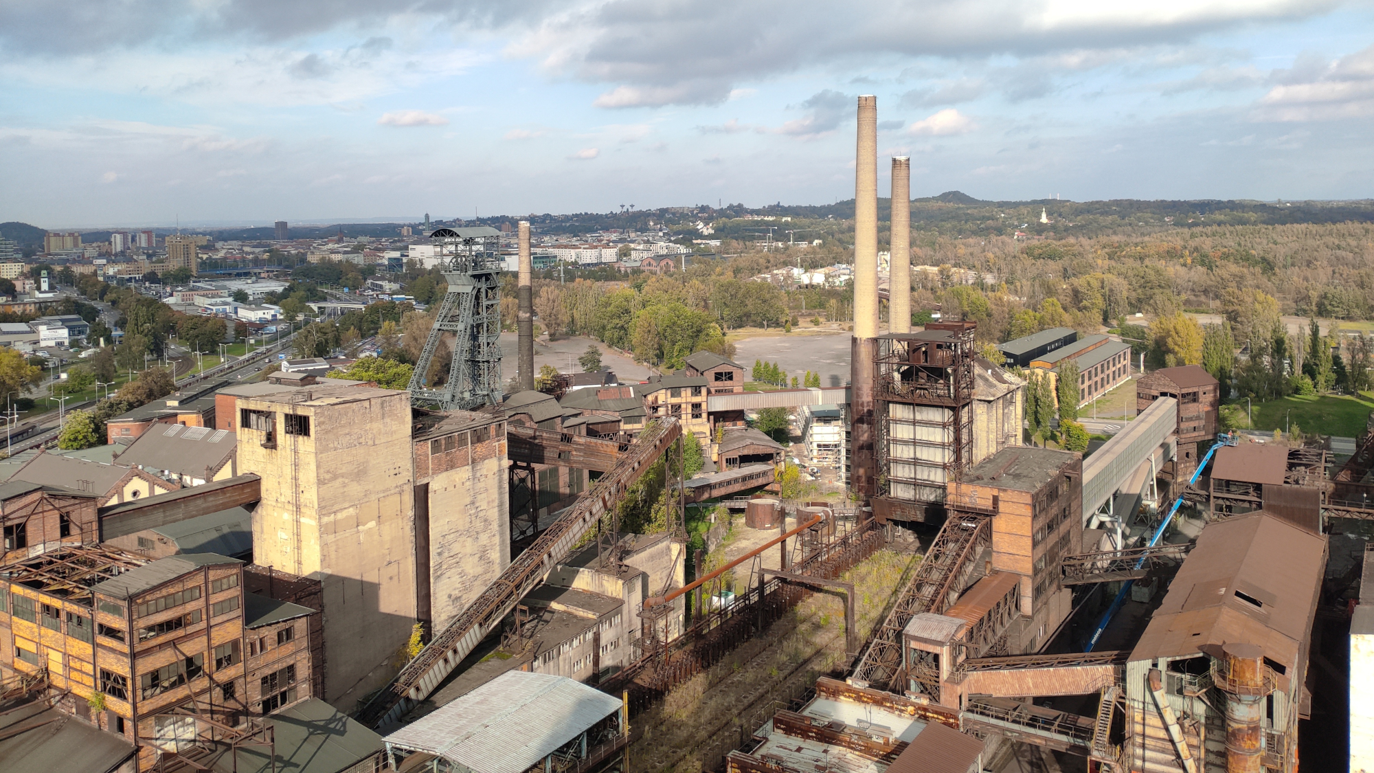 Poslední den před odjezdem z Ostravy, 15. 10. jsme věnovali doplnění plynu, zásob a praní prádla. Čistý propan, který používáme nám vyměnili v LPG Tomegas na Lanové ulici 1971/7 Ostrava, prádlo jsme si vyprali v samoobslužné prádelně Laundromat QUICKWASH – Hrabůvka Dr. Martínka 1392/14a Ostrava – tady byly naprosto perfektní služby, a zásoby doplnili v nejbližším supermarketu. Tohle vše nám zabralo celé dopoledne a odpoledne jsme jeli navštívit Dolní oblast Vítkovice. Monumentální průmyslový areál, který na první pohled asocioval Ocelové město z románu Julese Verna. No a tady jsme doplnili heslo kdo nefáral a nebyl na vysoké peci, nebyl v Ostravě. A jelo se na Bolt Tower, nejvyšší kavárnu na bývalé vysoké peci v Ostravě. Moderní prosklený výtah nás dovezl až přímo před kavárnu, ze které byl přímý vstup na ochoz, vedoucí až na samotnou špici věže vysoké pece. Po ochozu se dalo dojít až do prosklené pozorovatelny na vrcholu, a ještě dál vedla samostatná slepá lávka, která vedla cca 10 m do volného prostoru mimo věž. No… napíšu to takhle: kdo chce zažít absolutní pocit svobody, může to zkusit. A zůstane jen nebe nahoře a Ostrava dole. Na závěr padla 3 pivka v restauraci na Landeku plus cosi jako chipsy, ale proložené přílohou tak pálivou, že se to ani nedalo sníst. Prostě to byl docela slušný nářez.